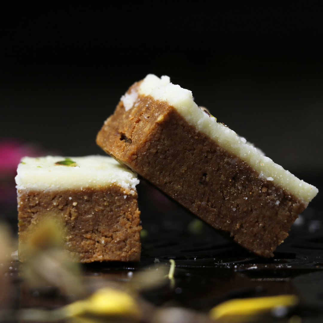 The unique aspect of Marwadi Barfi is its layered appearance, typically featuring a brown bottom layer and a white top layer, making it visually appealing as well. The barfi is cut into rectangle-shaped pieces, perfect for sharing. Its melt-in-the-mouth texture combined with the crunchy nuts creates a delightful taste experience. Enjoyed by people of all ages, Marwadi Barfi is a must-have sweet for any celebration.